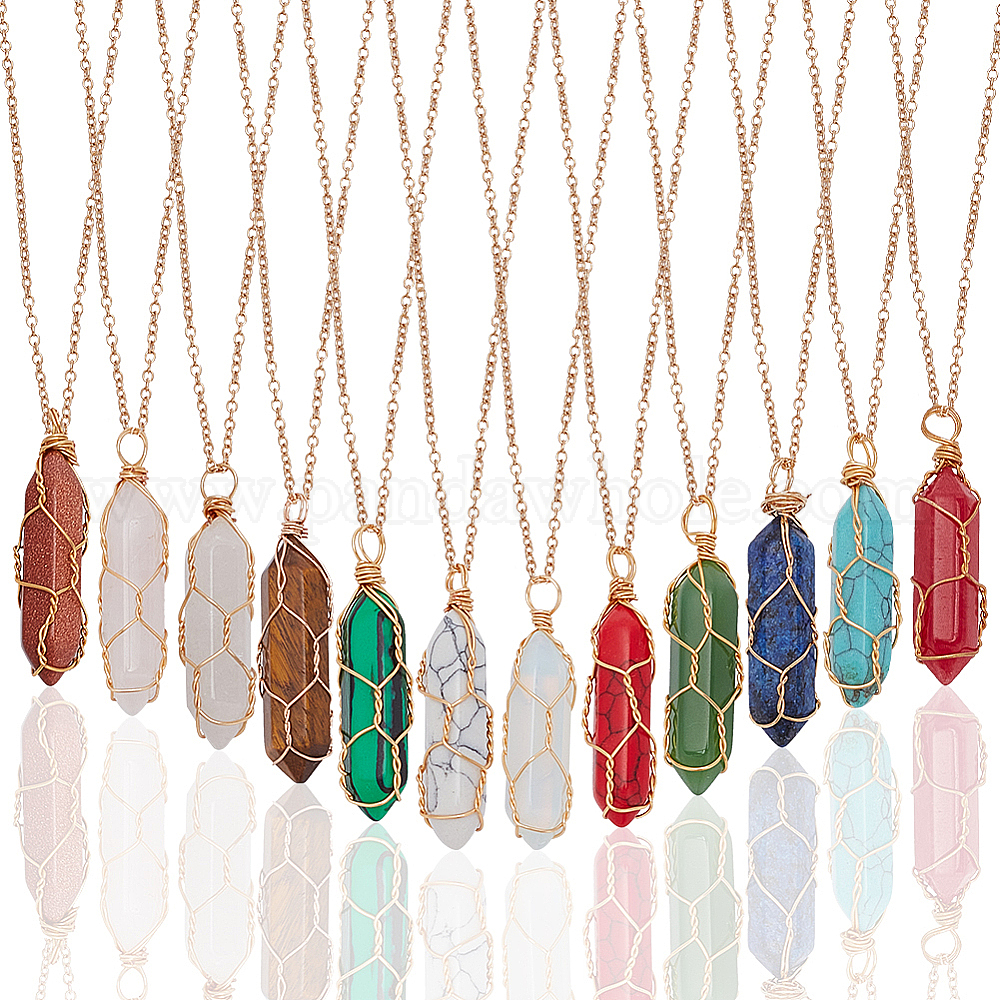 12 шт. 12 стиль, набор ожерелий с подвесками в виде пули из натуральных и синтетических драгоценных камней, золотое латунное плетеное колье с железными цепями для женщин