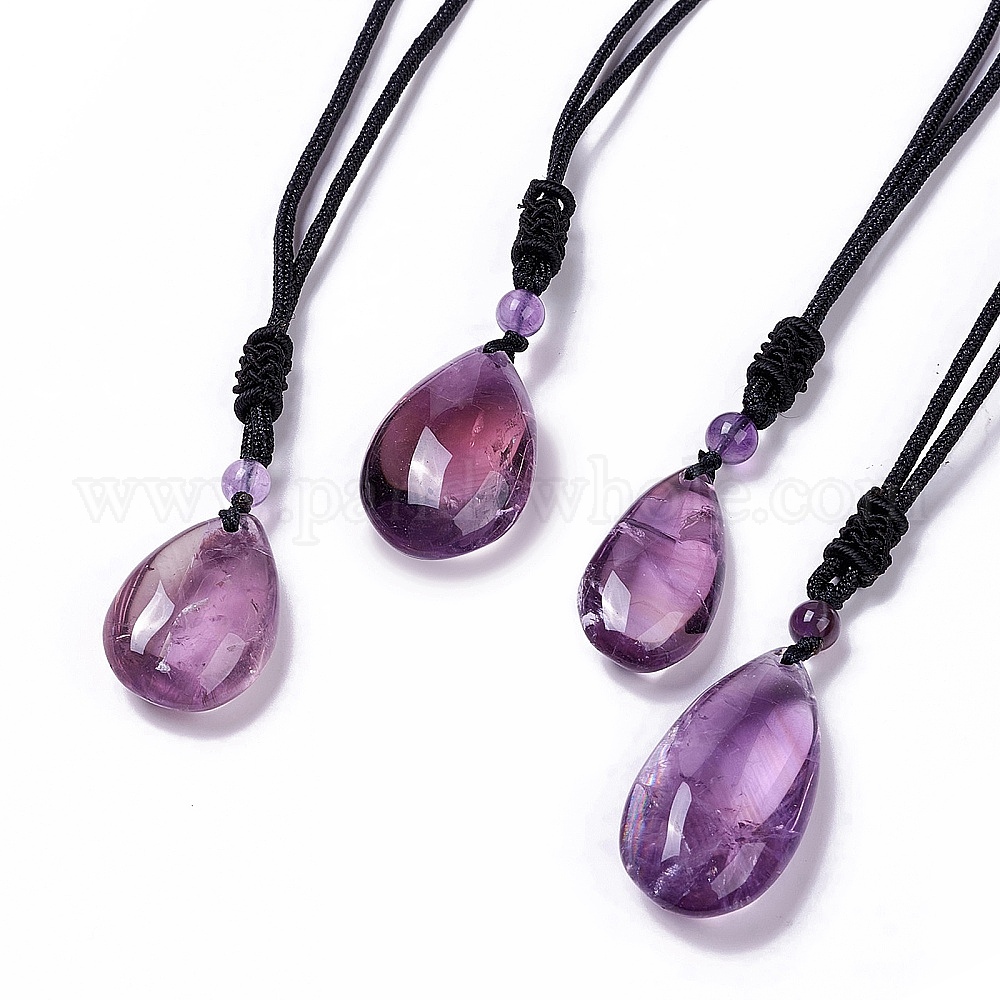 Ожерелье с подвеской из натурального аметиста и нейлоновым шнуром для женщин, слеза