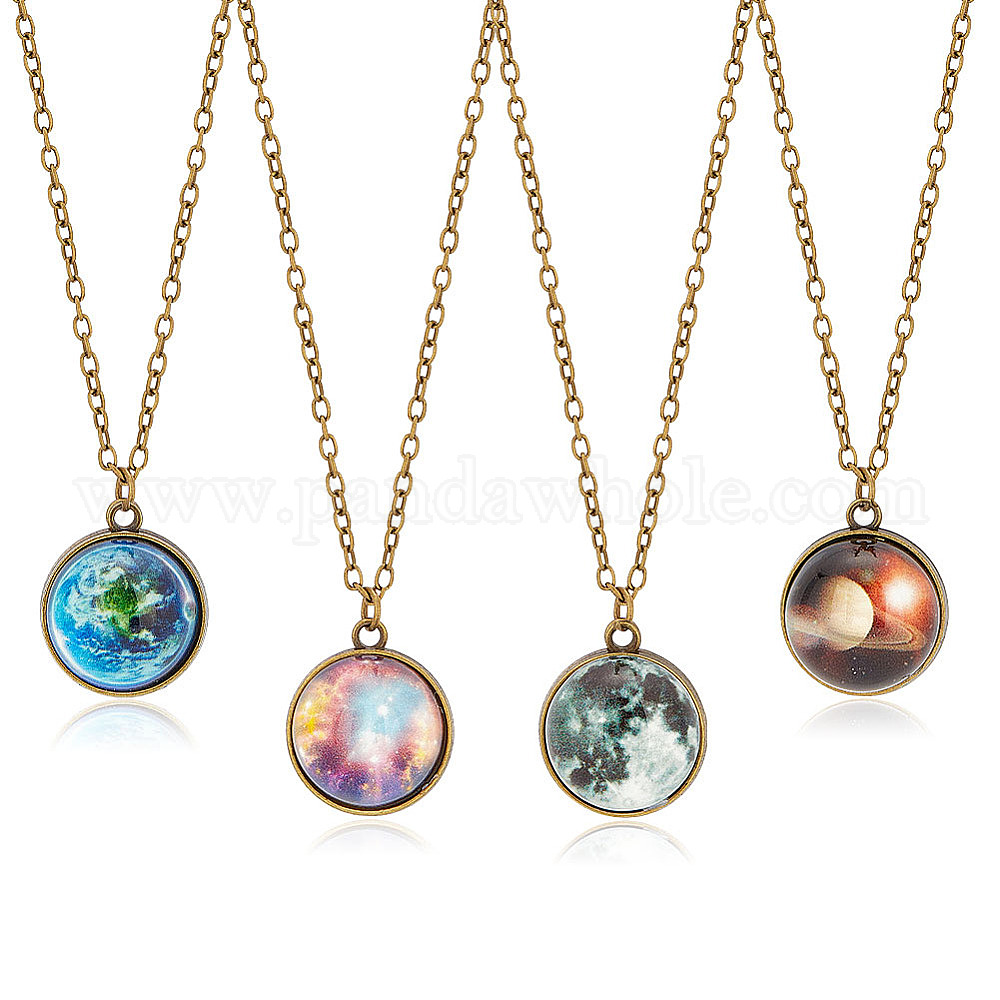 4шт 4 стиль светящийся стеклянный круглый планета кулон ожерелья комплект, светящиеся в темноте украшения из сплава для женщин