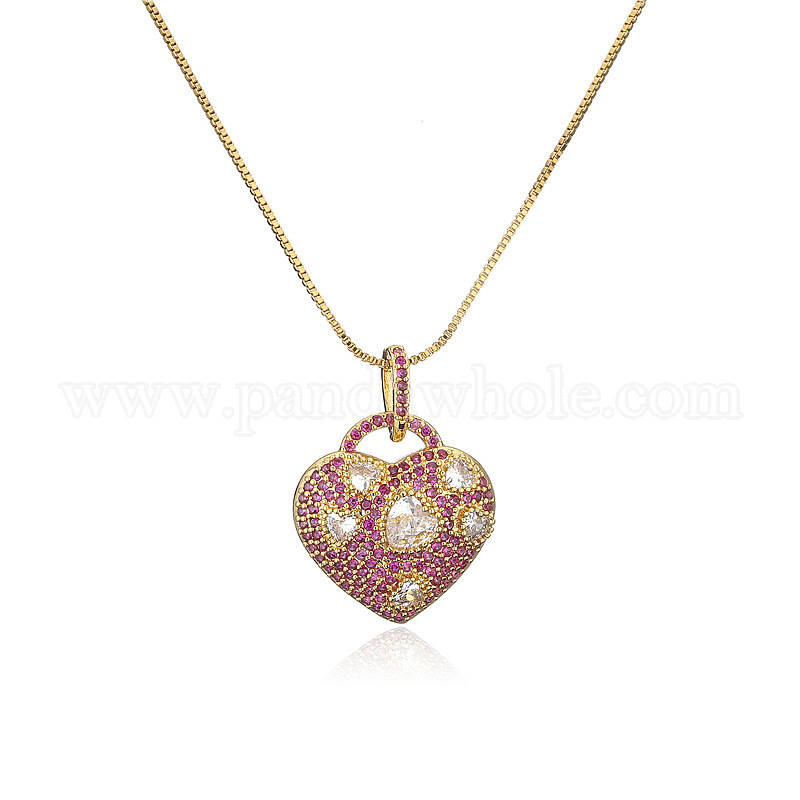 Модное колье-подвеска из меди с позолотой 18k и цветным цирконием в форме сердца с геометрическим дизайном