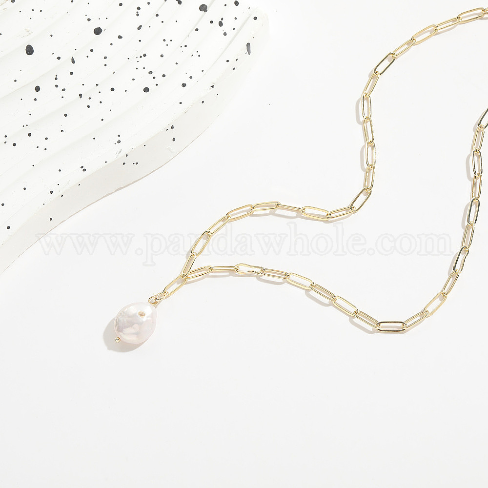 • Stapler Model (XL0016-GD) Потрясающее колье-цепочка из меди и пресноводного жемчуга - женские украшения с покрытием из золота 14k