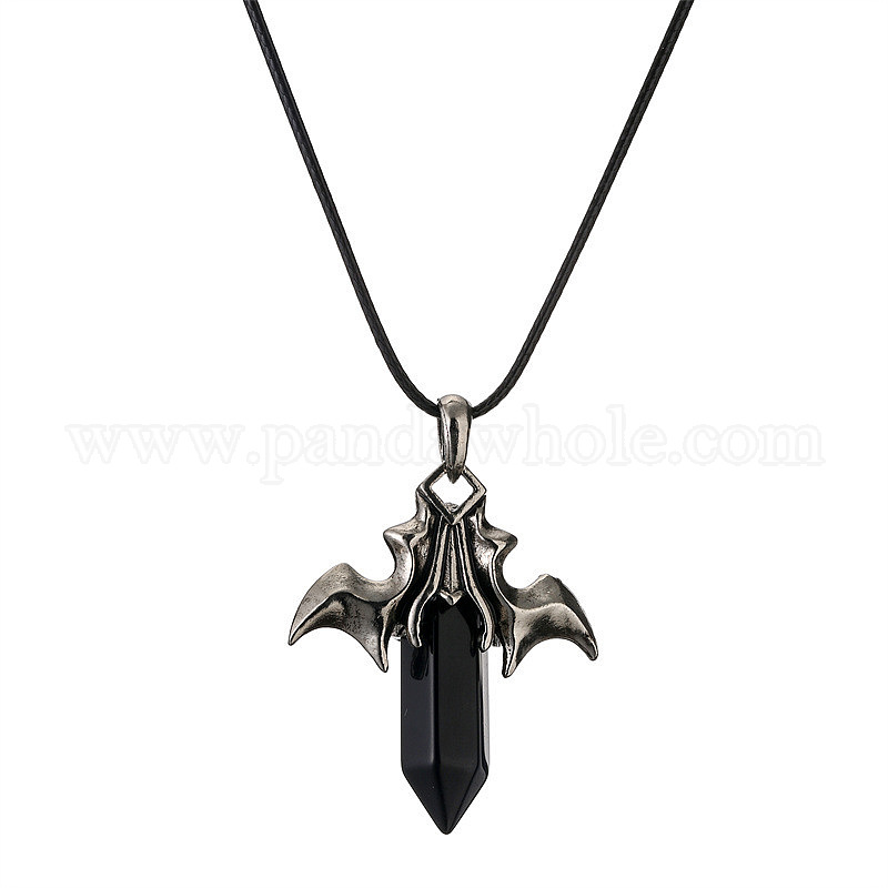 • CN000499 Black Agate Подвеска в стиле ретро с шестиугольной призмой из кристалла, модное колье унисекс
