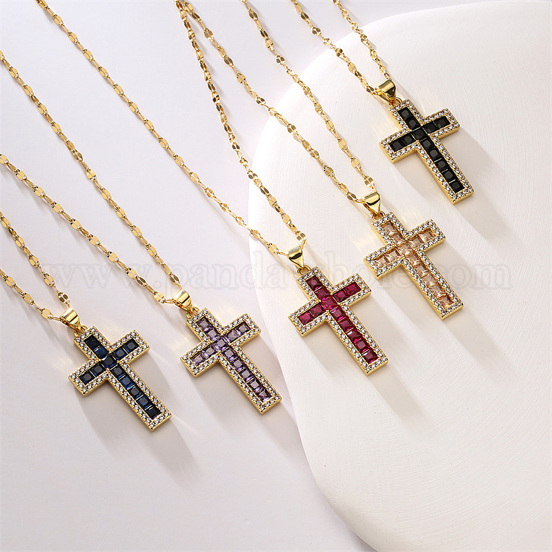 Винтажное колье-кулон с крестом для женщин из меди и циркония