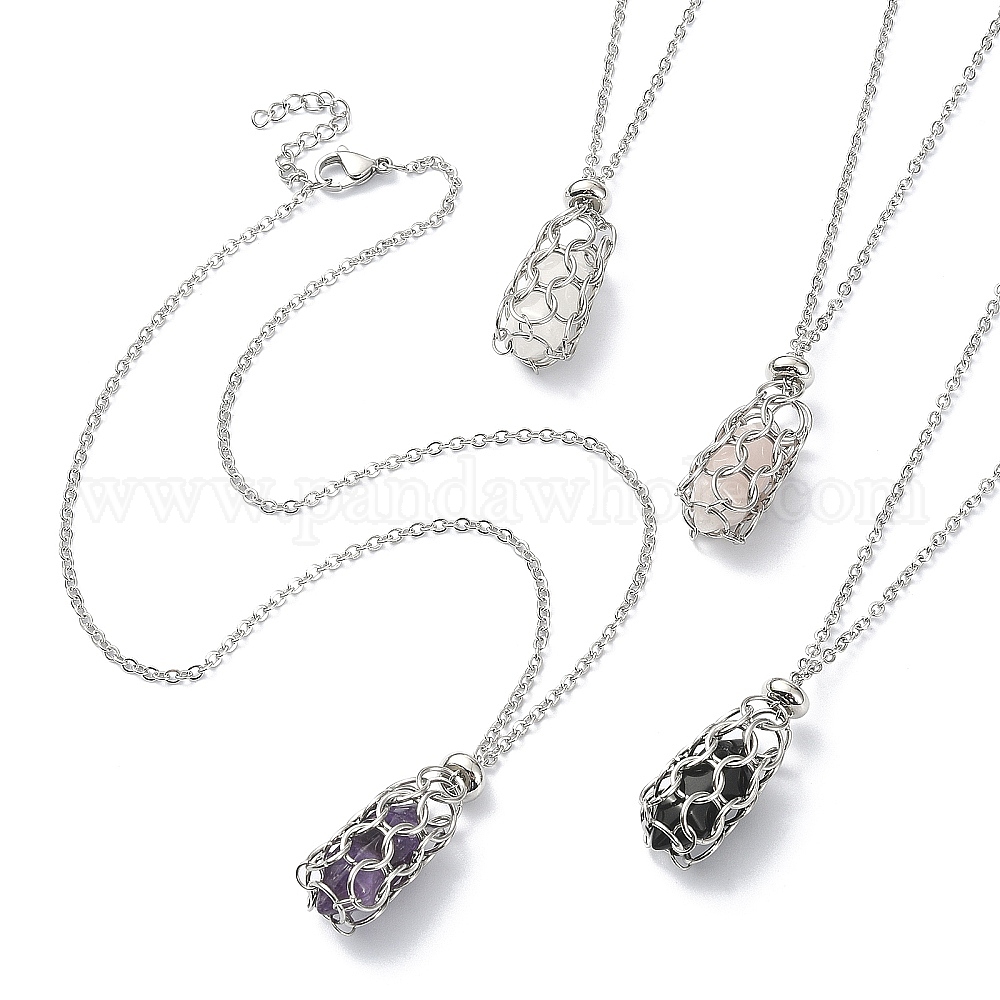 Ожерелья с подвесками в виде мешочка в технике макраме из натуральных драгоценных камней, сменный камень, 304 колье-цепочка из нержавеющей стали с застежкой-карабином
