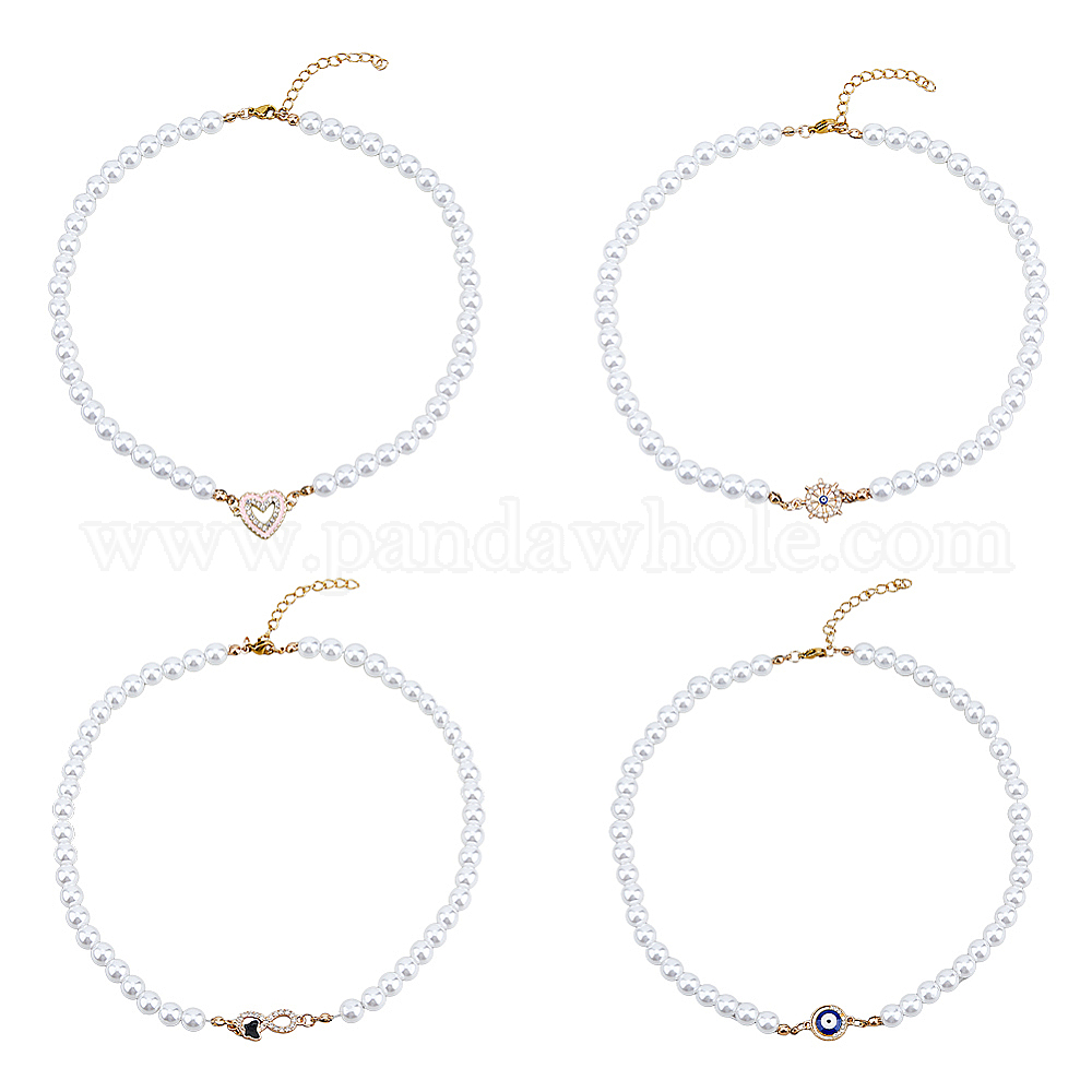 4шт. 4 стиль сердце & дурной глаз & бесконечность & шлем латунные стразы подвески ожерелья комплект с искусственным жемчугом бусины цепи для женщин