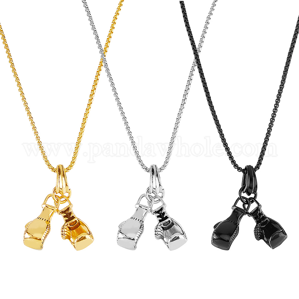 3шт 3 цвета нержавеющая сталь боксерская перчатка подвеска ожерелье комплект с коробкой цепи для мужчин