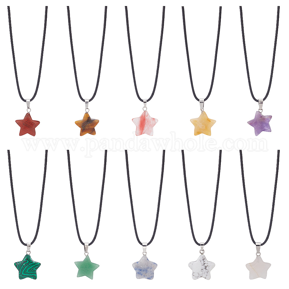 10шт 10 стильные ожерелья с подвесками в виде звезд из натуральных смешанных драгоценных камней с вощеными шнурами
