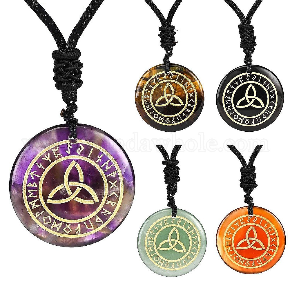 Ожерелья с подвесками из натуральных и синтетических драгоценных камней трикетра/тройственный узел, Ожерелье-амулет с руническими словами Одина, скандинавского викинга и веревки