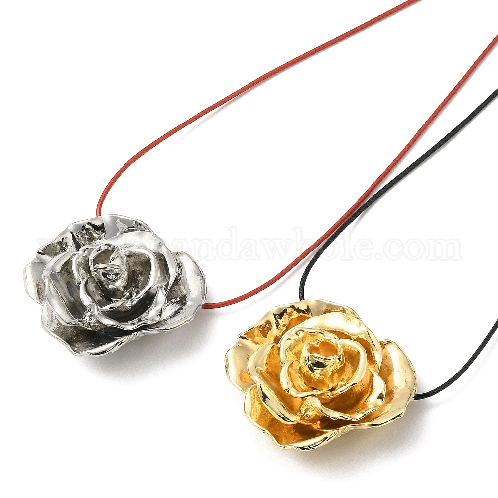 Ожерелье с подвеской в виде розы из цинкового сплава и кожаными шнурами