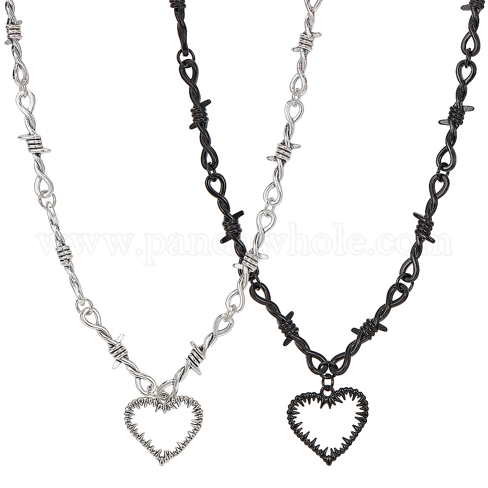 2 шт 2 цвета сплава сердце кулон ожерелье с шипами цепи для женщин