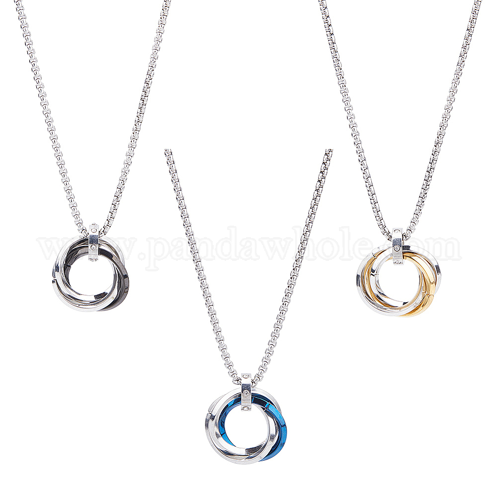 Ожерелье с подвеской из нержавеющей стали: около 23.23 дюйма (59см) в длину, шириной 2.5 мм , Кольцо: 21x2.5 mm, 3 цветов, 1 шт / цвет, 3шт;