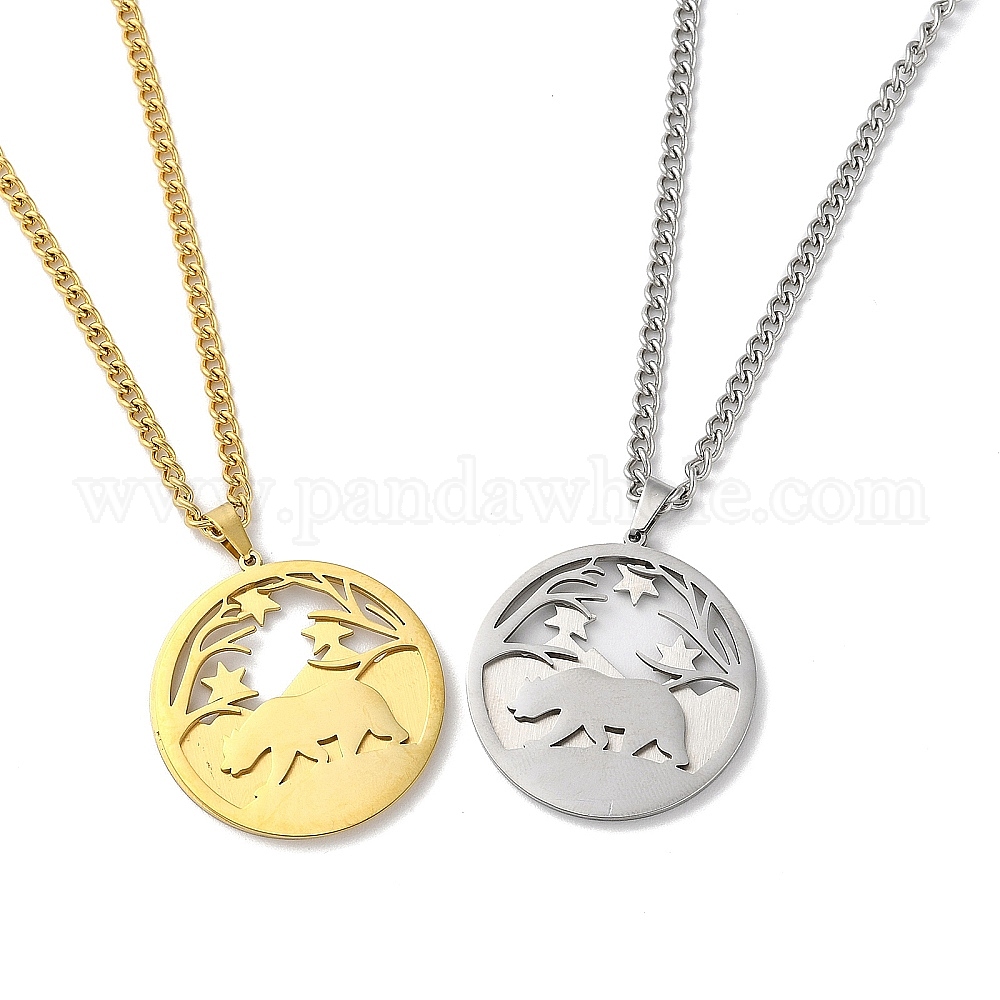 304 двухслойные ожерелья с подвесками из нержавеющей стали., дерево с медведем