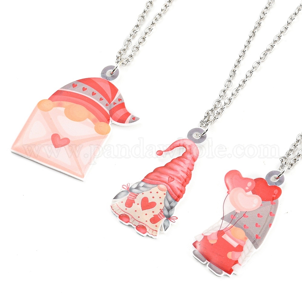 Акриловое колье-подвеска ко Дню святого Валентина с цепочками из цинкового сплава, гном с сердцем (02PGNW)