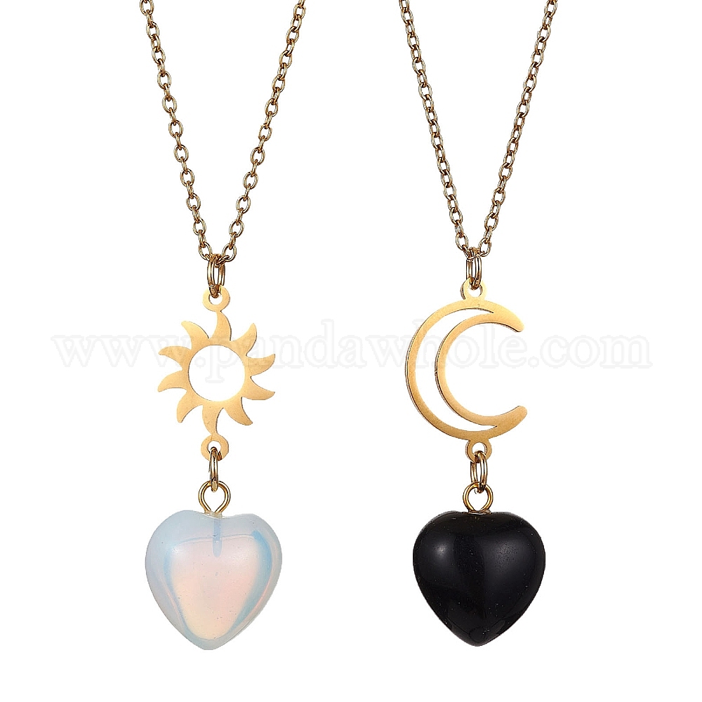 • Золотой 2 шт. 2 комплект ожерелья с подвеской в форме сердца из опалита и натурального обсидиана, солнце и луна 304 ожерелья из нержавеющей стали, золотые, 17.72~17.91 дюйм (45~45.5 см), 1 шт / стиль