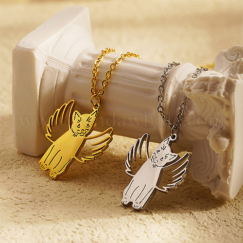 • Нержавеющая Сталь Цвет Не тускнеет 304 ожерелье из нержавеющей стали с подвеской в виде кошки, цвет нержавеющей стали, 17.72 дюйм (45 см)