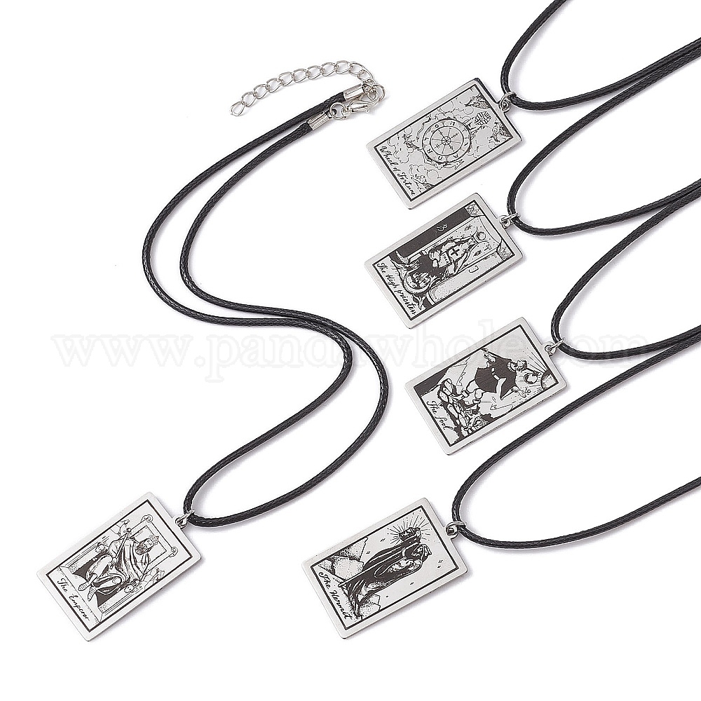 Карты Таро 201 ожерелья с подвесками из нержавеющей стали, с искусственной кожи шнуры
