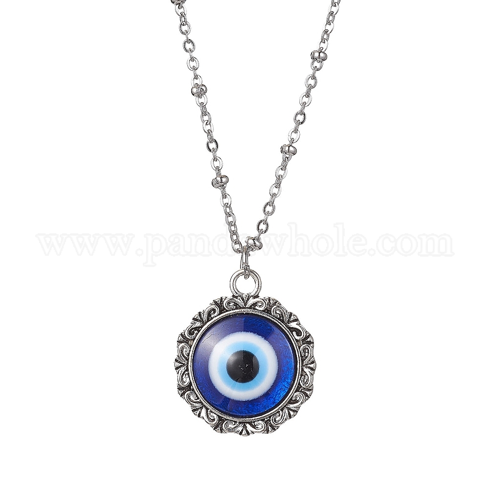 Ожерелья с подвесками из сплава смолы сглаза, 304 ожерелья-сателлиты из нержавеющей стали для женщин