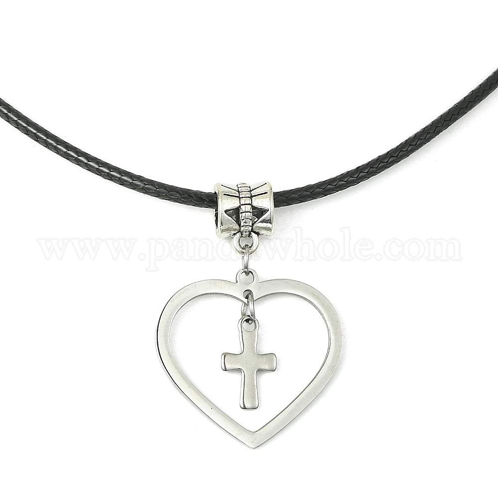304 ожерелья с крошечным крестиком из нержавеющей стали и 201 ожерелья с подвесками в виде сердечек из нержавеющей стали, с искусственной кожи шнуры