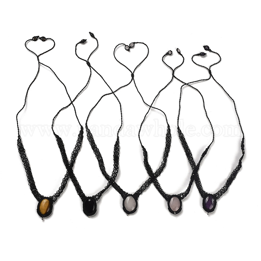 Овальное колье с подвеской из натуральных смешанных драгоценных камней, колье-колье с плетеными восковыми нитями