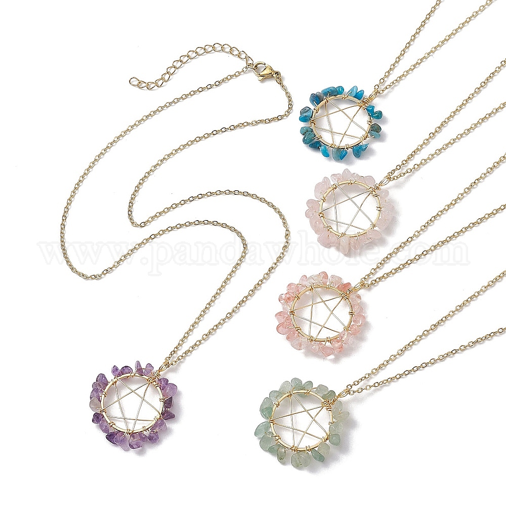 Ожерелья с подвесками из натуральных и синтетических драгоценных камней в виде звездочек, украшенные бисером, с цепочками из золотого сплава