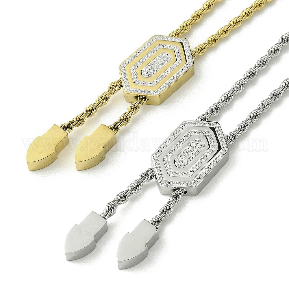 • Золотой 304 из нержавеющей стальной трос цепи ожерелья, прозрачные подвески с шестигранной головкой и кубическим цирконием, золотые, 18.74 дюйм (47.6 см)