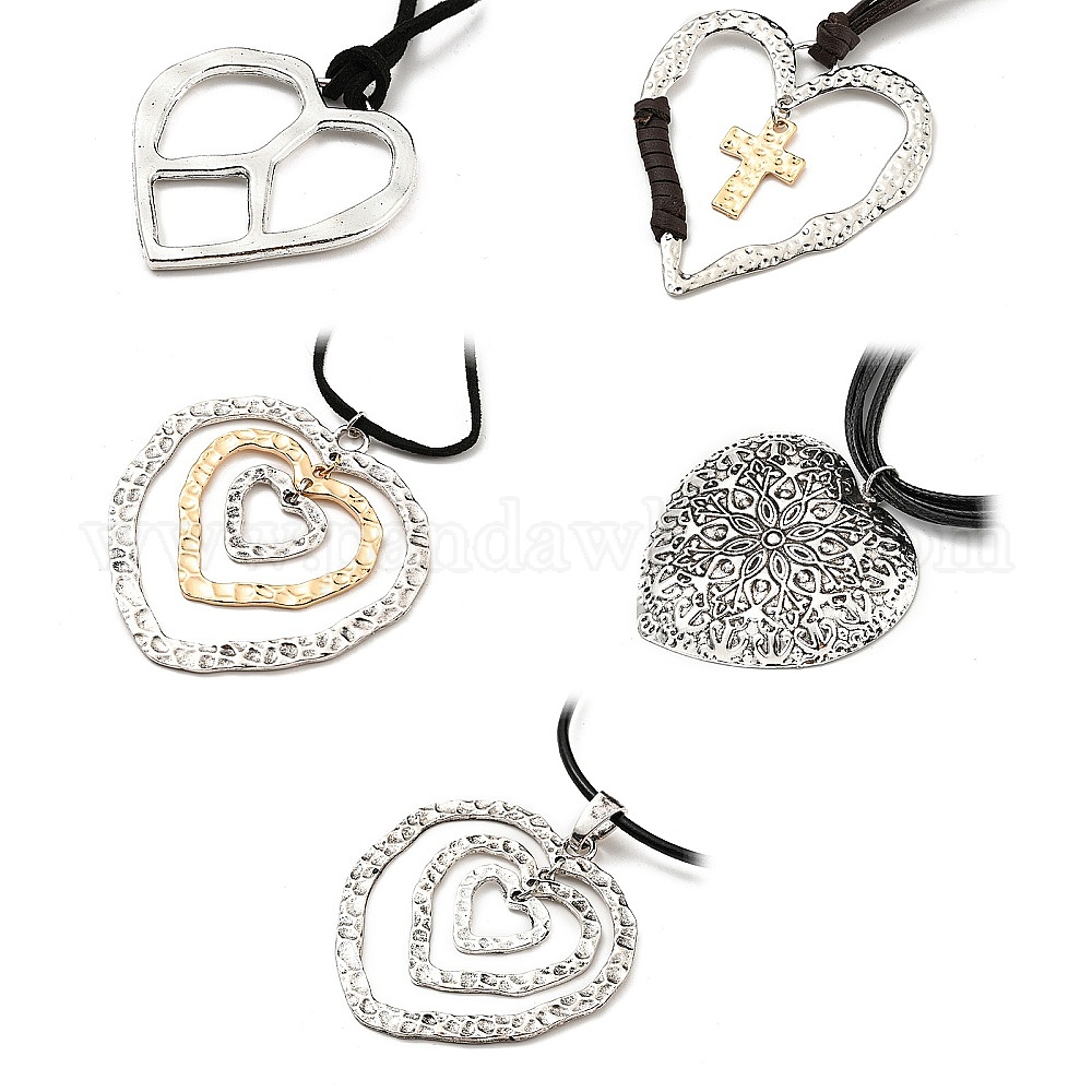 • Античное Серебро Сплав ожерелья шкентеля, с воском веревкой, украшения для женщин, сердце, античное серебро, 14.84 дюйм (37.7 см)