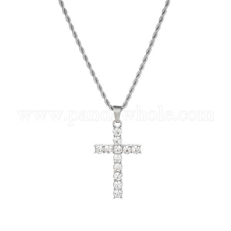 Ожерелья с подвесками в виде креста со стразами, ожерелья из нержавеющей стали для мужчин