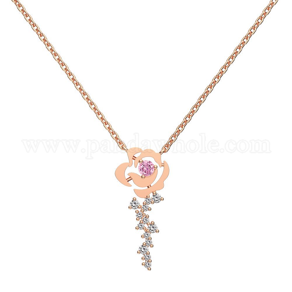 • Платина Антикоррозийные 925 ожерелья с подвесками из стерлингового серебра, микропейв прозрачный кубический цирконий, цветок, платина, 15.87 дюйм (40.3 см)