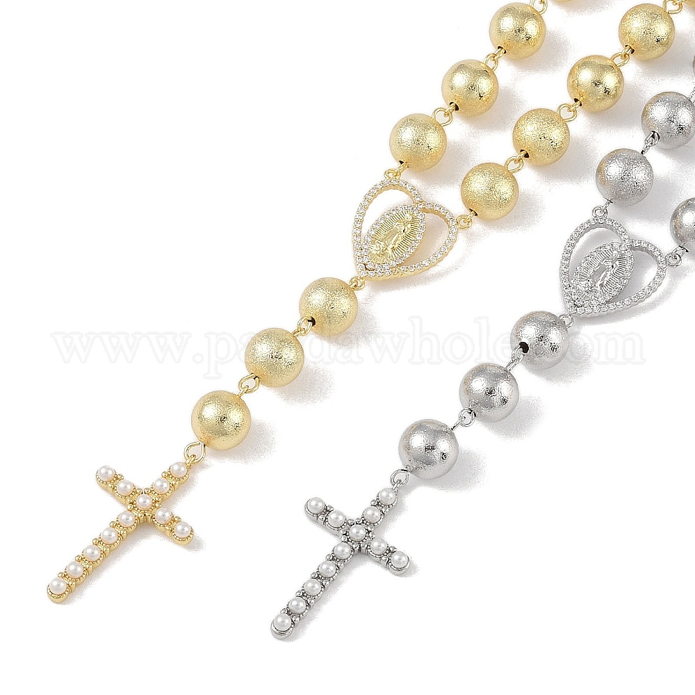 Ожерелья с подвесками из латуни с микропаве и прозрачным фианитом и пластиковым жемчугом, четки ожерелья из бисера, крестик