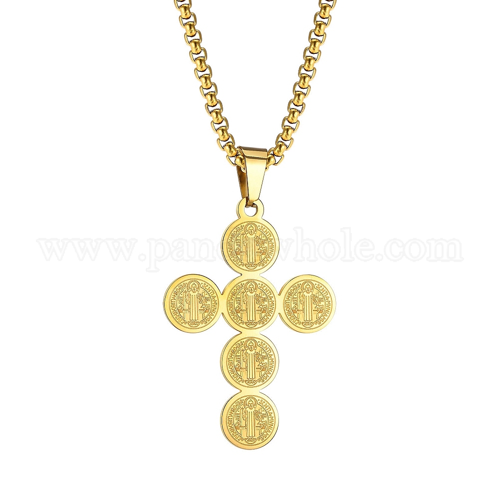 • Золотой Ожерелье из нержавеющей стали в религиозном стиле с подвеской-цепочкой, крестик, золотые, 23.62 дюйм (60 см)