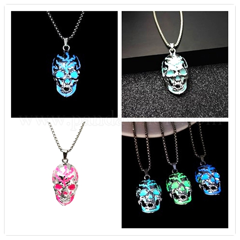 Хэллоуин светящиеся подвески из черепа из сплава ожерелья, светится в темноте