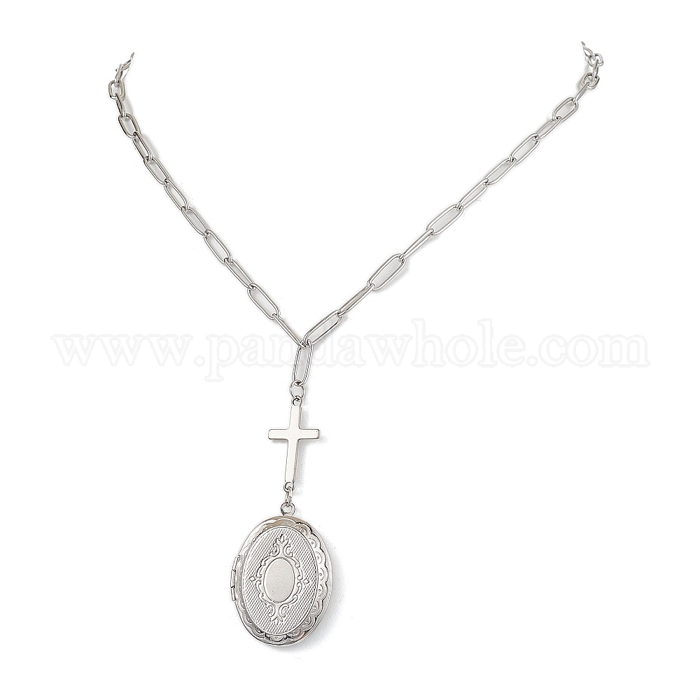 Ожерелья с подвесками из латуни в форме креста и овального медальона, 304 женские ожерелья-цепочки со скрепками из нержавеющей стали