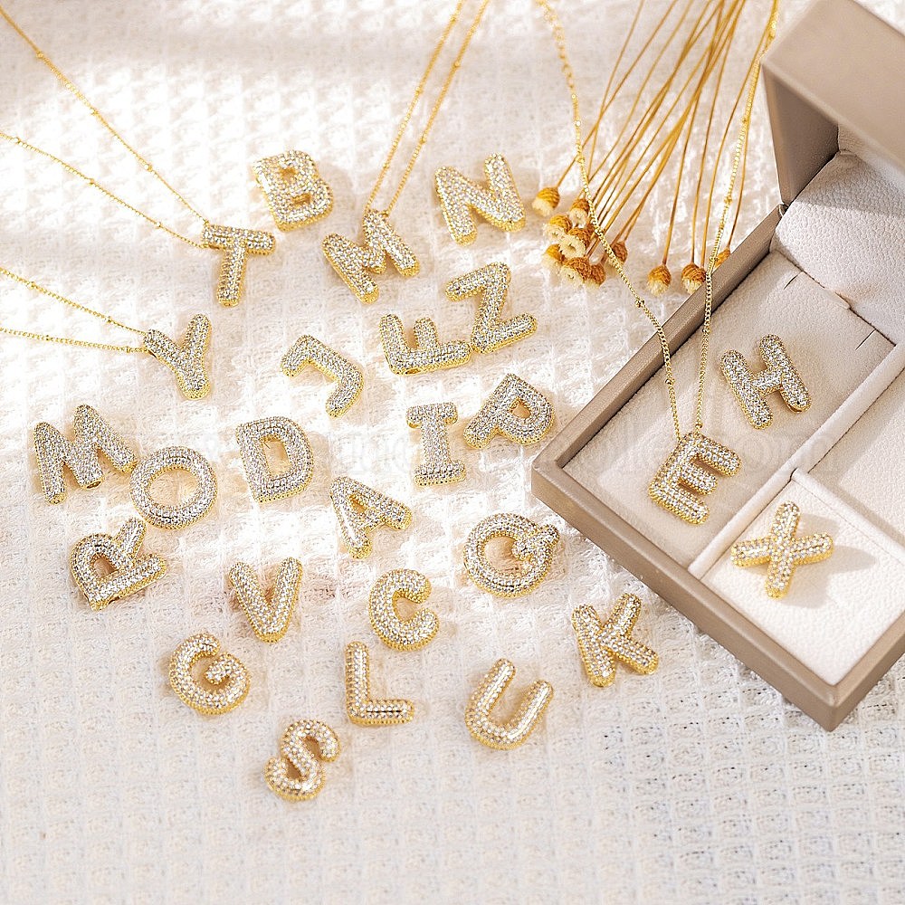 Латунные микропаве прозрачные кубические цирконии ожерелья с подвесками в виде букв, реальный 18 k позолоченный