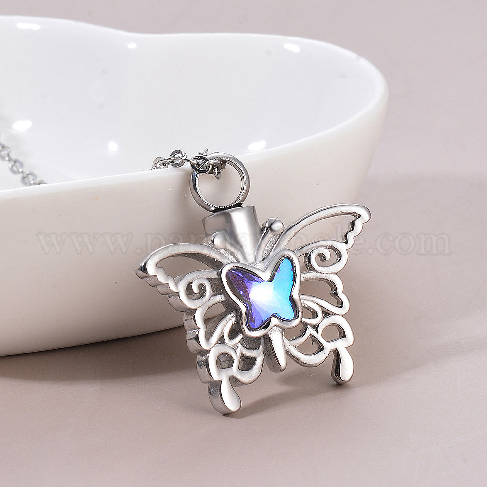 Ожерелье из нержавеющей стали с бабочкой в виде урны для пепла, памятные украшения для женщин