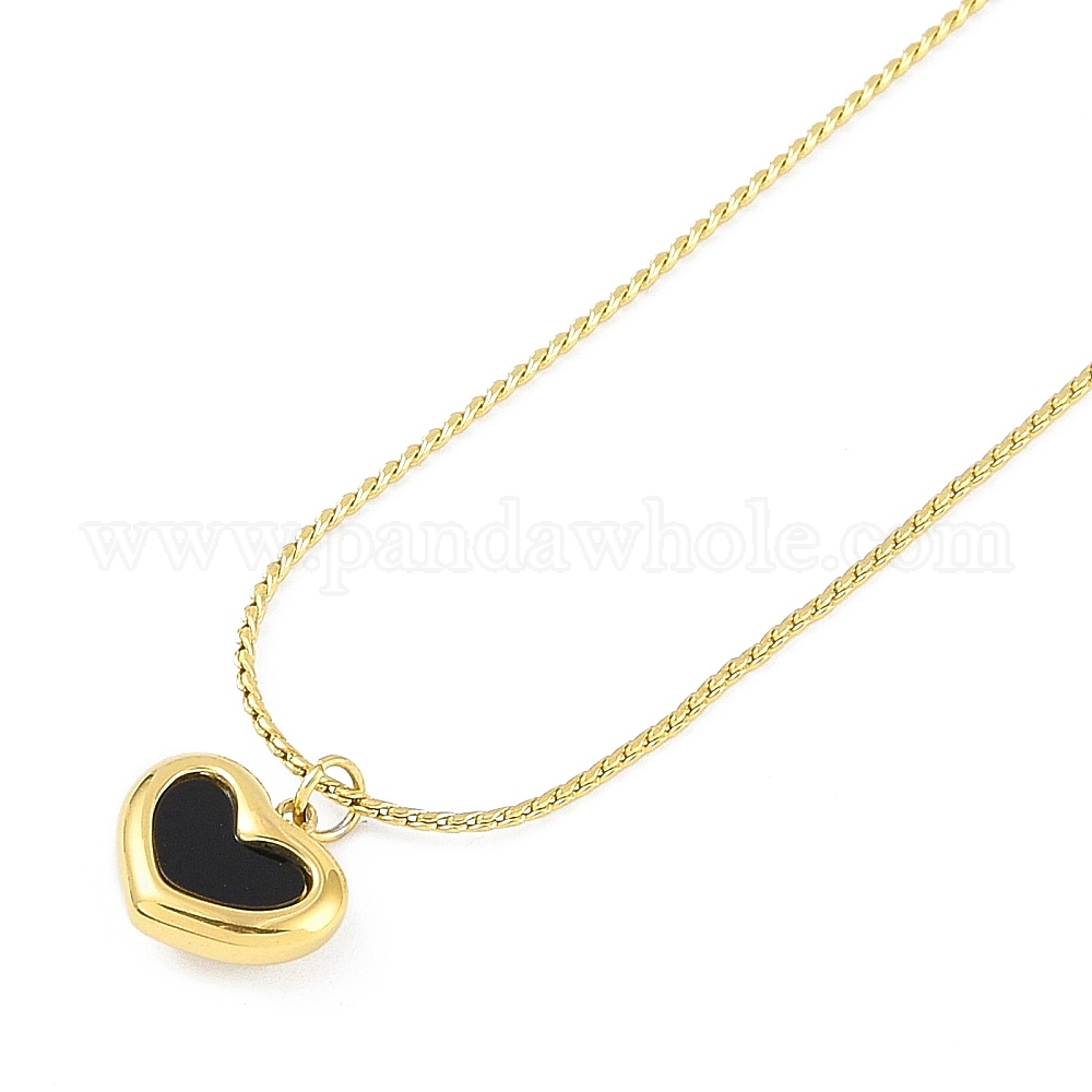 • Золотой Ионное покрытие (ip) 304 нержавеющая сталь черная эмаль бостонские цепочки ожерелья с подвеской в форме сердца для женщин, золотые, 17.52 дюйм (44.5 см)