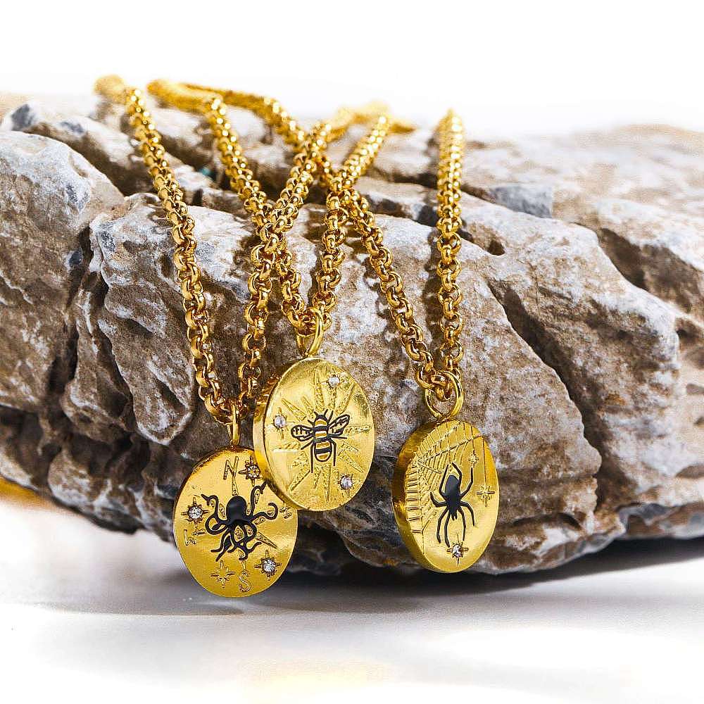Золотое ожерелье с подвеской из нержавеющей стали, плоский круг с тотемом