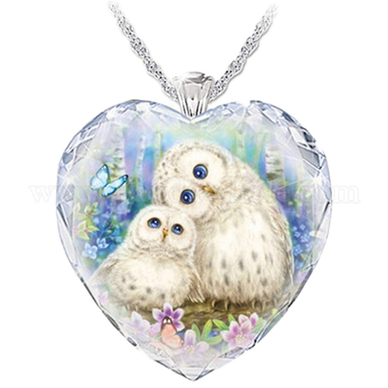 Стеклянное ожерелье в форме сердца, подвески из сплава для женщин, сова