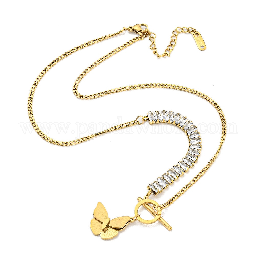 Ионное покрытие (IP) 201 ожерелья с подвесками в форме бабочки из нержавеющей стали и стразами