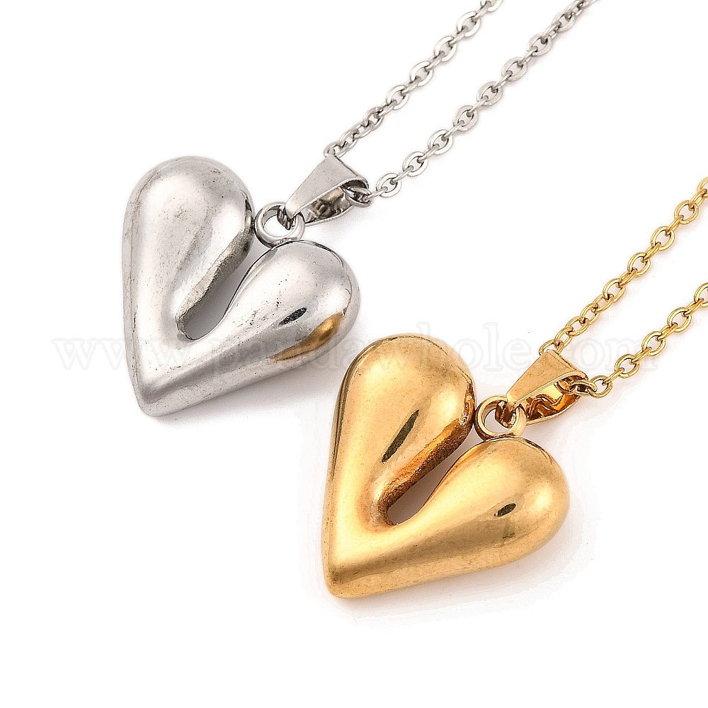 • Золотой 304 женские ожерелья с подвесками в форме сердца из нержавеющей стали, золотые, 18.11 дюйм (46 см)