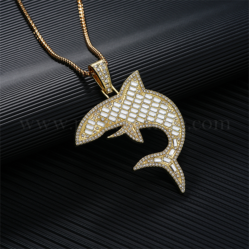 Ожерелье с подвеской в виде акулы из сплава со стразами, стиль хип-хоп, модный и универсальный