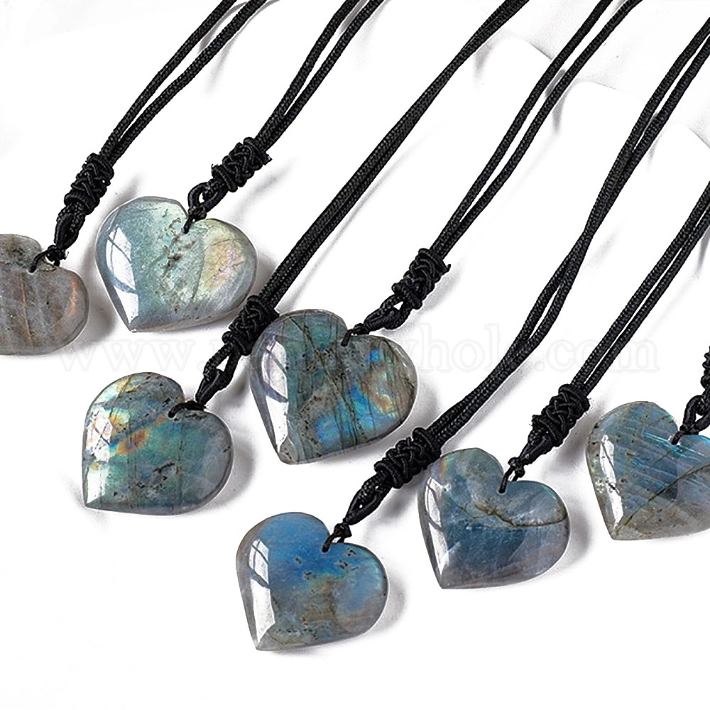 Ожерелья с подвесками в форме сердца из натурального лабрадорита, регулируемые черные плетеные ожерелья из шнура