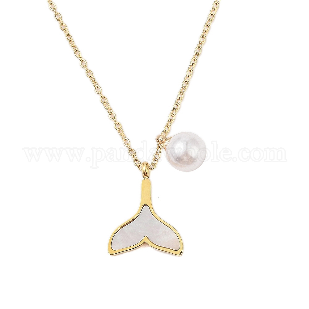 • Настоящее золото 18K Круглые подвески из искусственного жемчуга и ракушек из АБС-пластика с подвеской в виде хвоста кита, 304 женские украшения из нержавеющей стали, долговечный, реальный 18 k позолоченный, 16.14 дюйм (41 см), удлинитель: 60 мм, Кулон : 19x15 мм, бусина : 11x8 mm