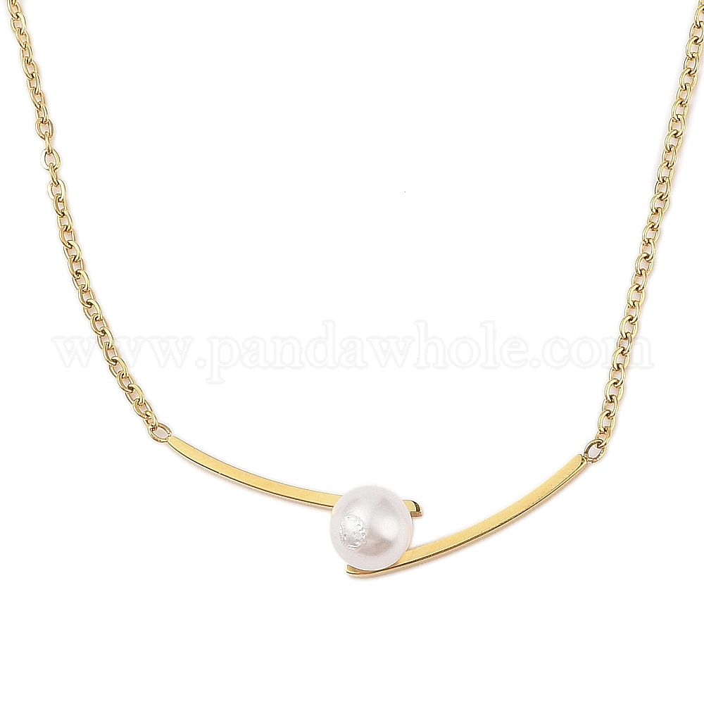 • Настоящее золото 18K 304 Ожерелья с подвесками в форме круглого шарика из нержавеющей стали и АБС-пластика с имитацией жемчуга, долговечный, реальный 18 k позолоченный, 17.13 дюйм (43.5 см), удлинитель: 58 мм, Кулон : 9.5x32 мм