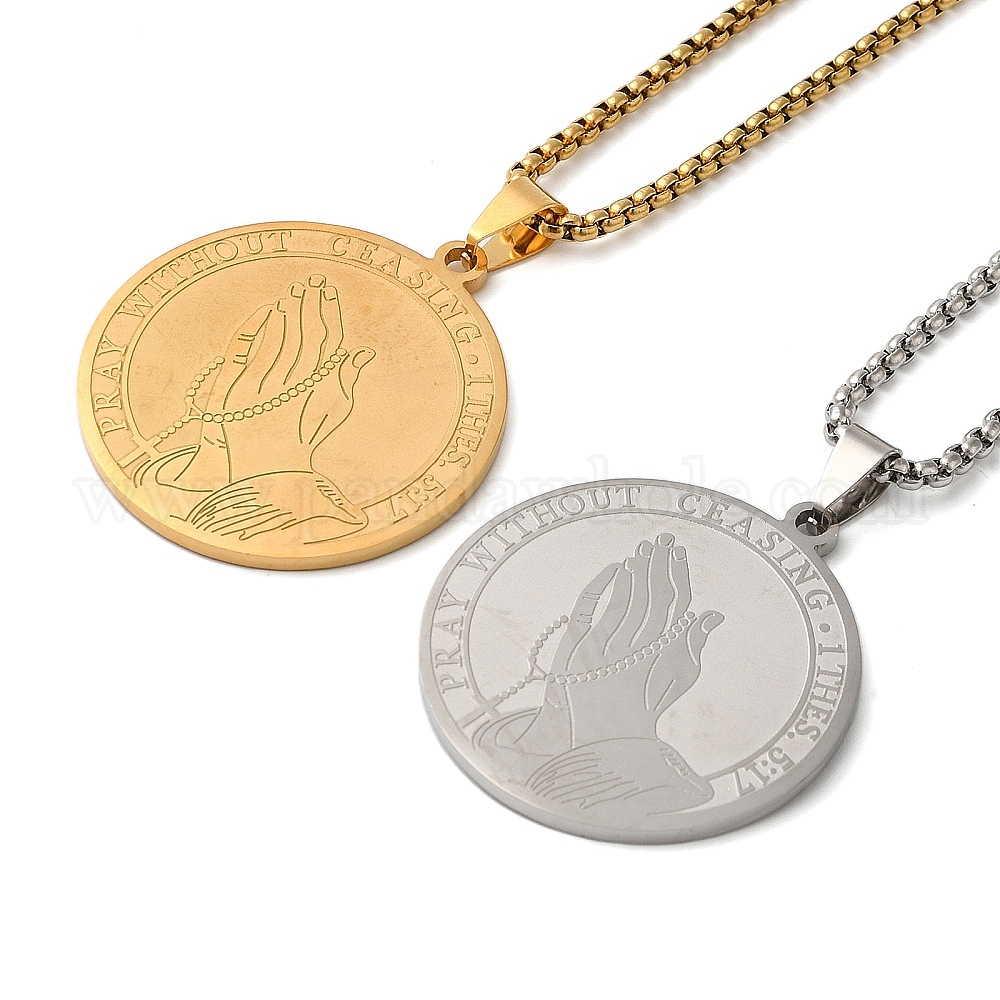 Плоские круглые ожерелья с молящимися руками 201 подвески из нержавеющей стали для женщин и мужчин