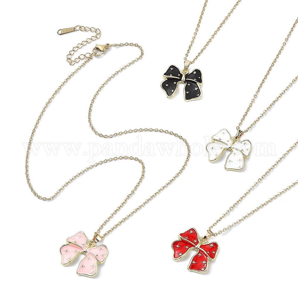 304 ожерелья нержавеющей стали, кабельные цепи, ожерелья с подвеской в виде банта из сплава и эмали для женщин, золотые (02WWBR)