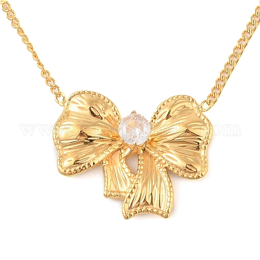 • Настоящее золото 18K 304 ожерелья из нержавеющей стали с подвеской в виде банта из витой цепочки со стразами для женщин, реальный 18 k позолоченный, 15.28 дюйм (38.8 см)