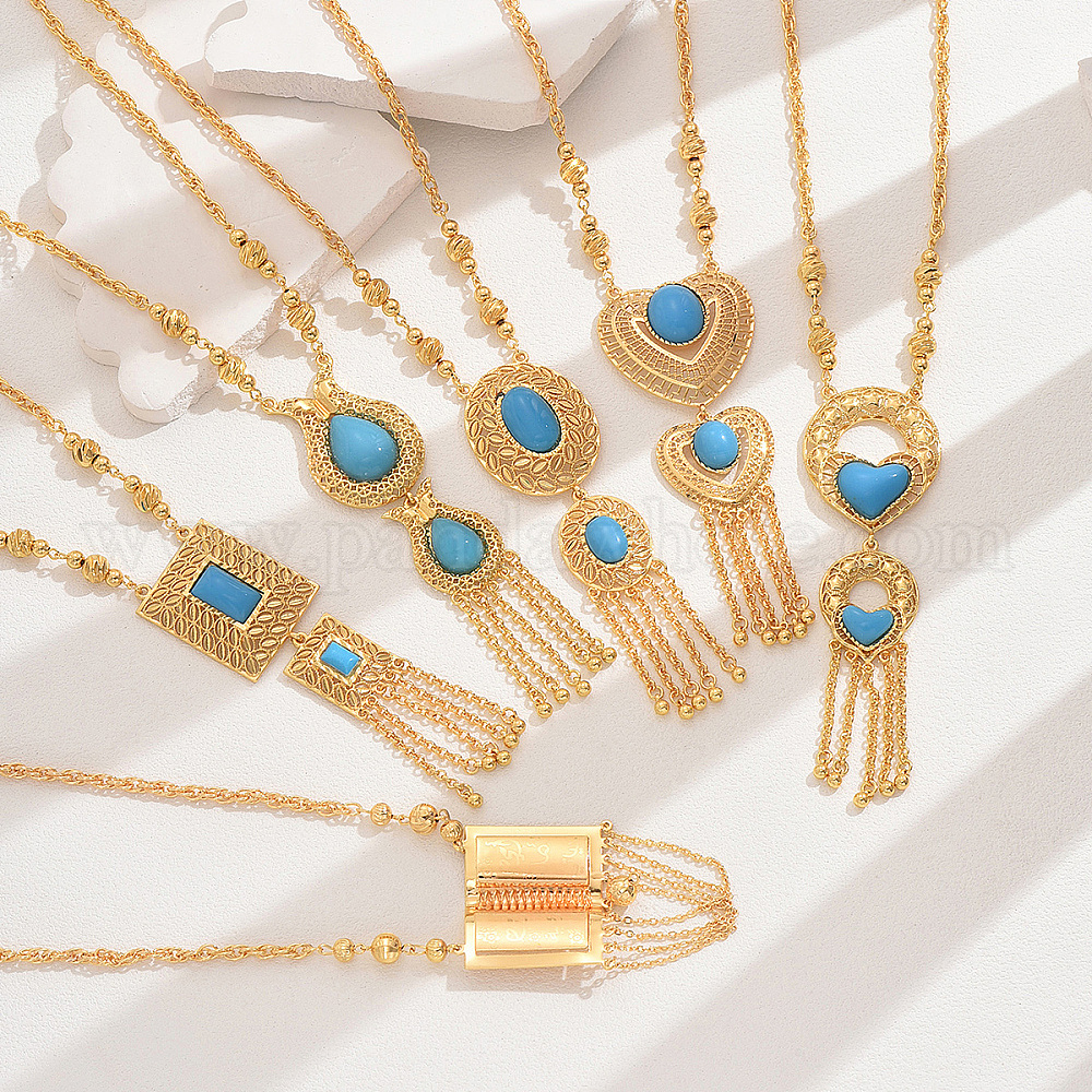 Модные винтажные ожерелья с подвесками-кисточками из латуни и смолы с имитацией драгоценных камней для женщин, глубокое синее небо