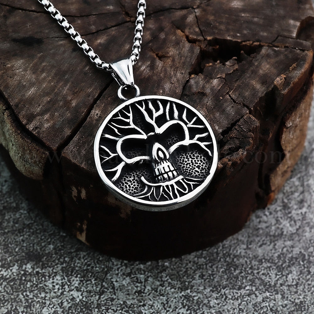 Подвеска из нержавеющей стали ожерелья, цепи коробки, плоский круглый дерево жизни
