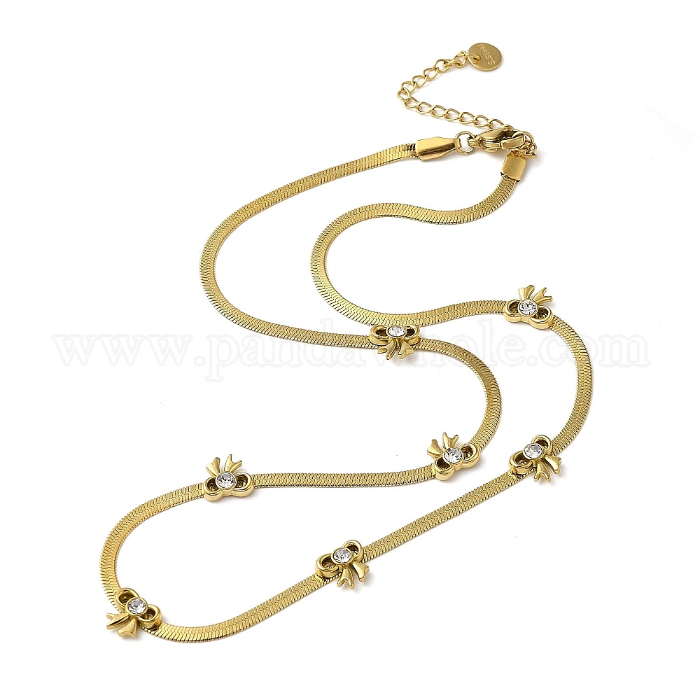 304 ожерелья из нержавеющей стали с цепочкой-змейкой и бантом, украшенные кристаллами и стразами, для женщин (02X3AY)