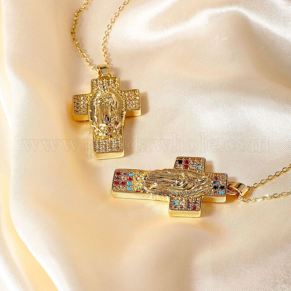 Европейские и американские латунные ожерелья с подвесками в виде креста Девы Марии с кубическим цирконием, золотые (02X4FJ)